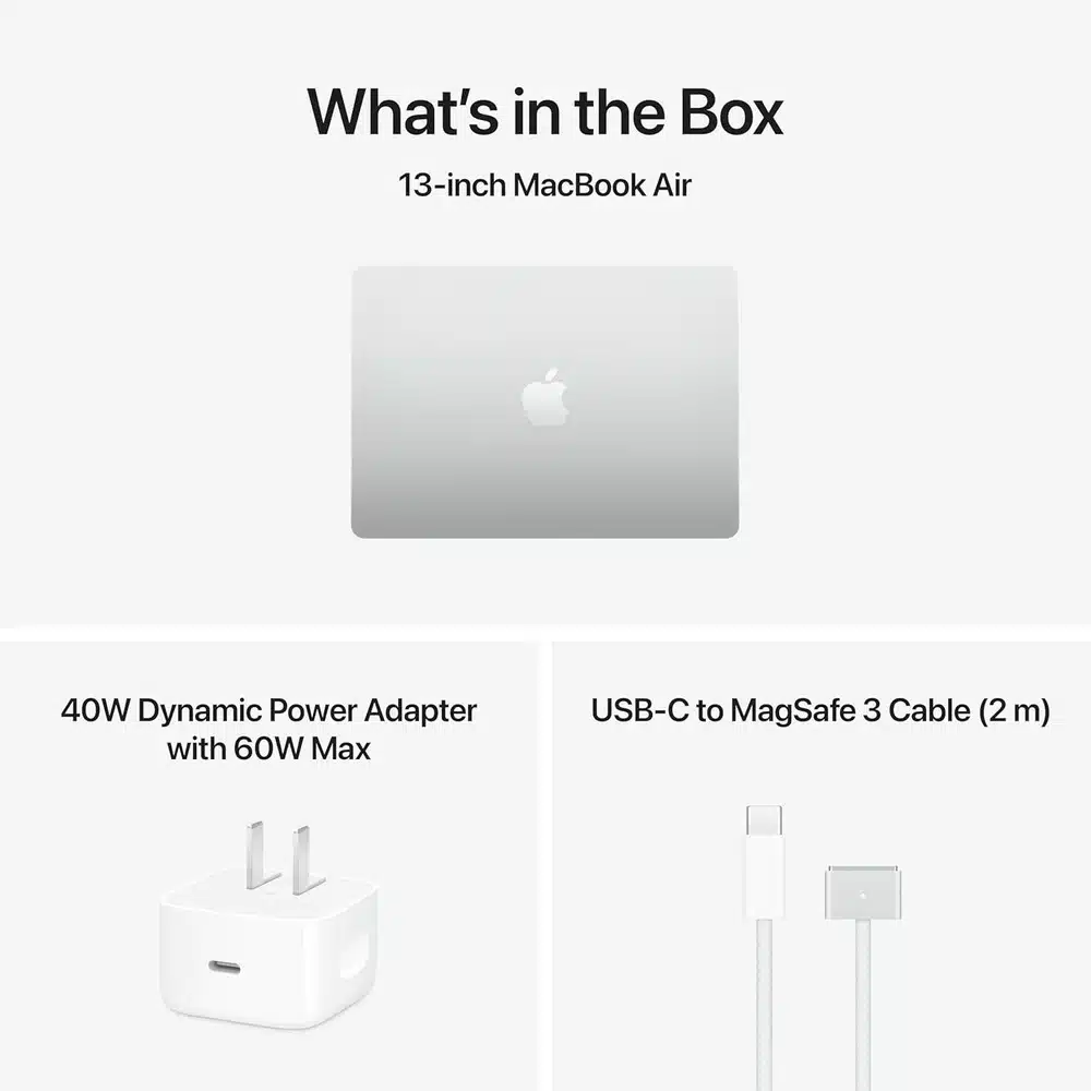 - Included: MacBook Air, USB-C to MagSafe cable, 35W dual-port USB-C power adapter