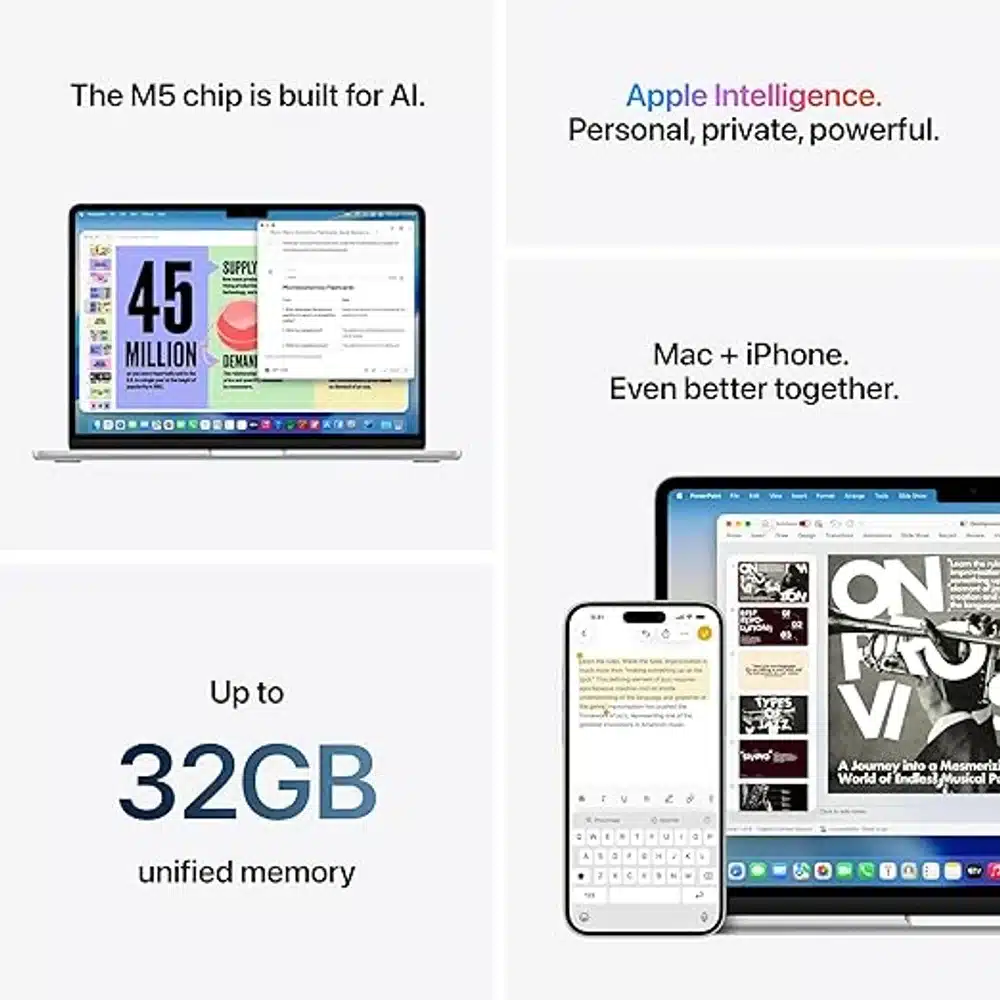 Whether you’re writing essays, editing photos, developing code, attending virtual classes, or simply seeking an intelligent, portable laptop for everyday use, the Apple 2026 MacBook Air in Silver delivers professional-grade performance with consumer-friendly simplicity. Its M5 chip + AI integration (vs. standard laptops) provides unparalleled intelligent productivity, while the Liquid Retina display + all-day battery + 16GB RAM + 512GB storage + Silver design proves that premium laptops shouldn’t compromise on visuals, endurance, capacity, or style—making every computing moment more intelligent, efficient, and perfectly crafted with Apple’s trusted innovation.