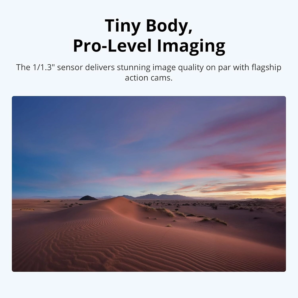 Go anywhere — the Osmo Nano is waterproof up to 10 meters (33 ft) without a case, and its robust build ensures it can handle rain, splashes, and dust. Whether it’s mountain biking, snorkeling, or exploring city streets, this camera keeps up with your pace.