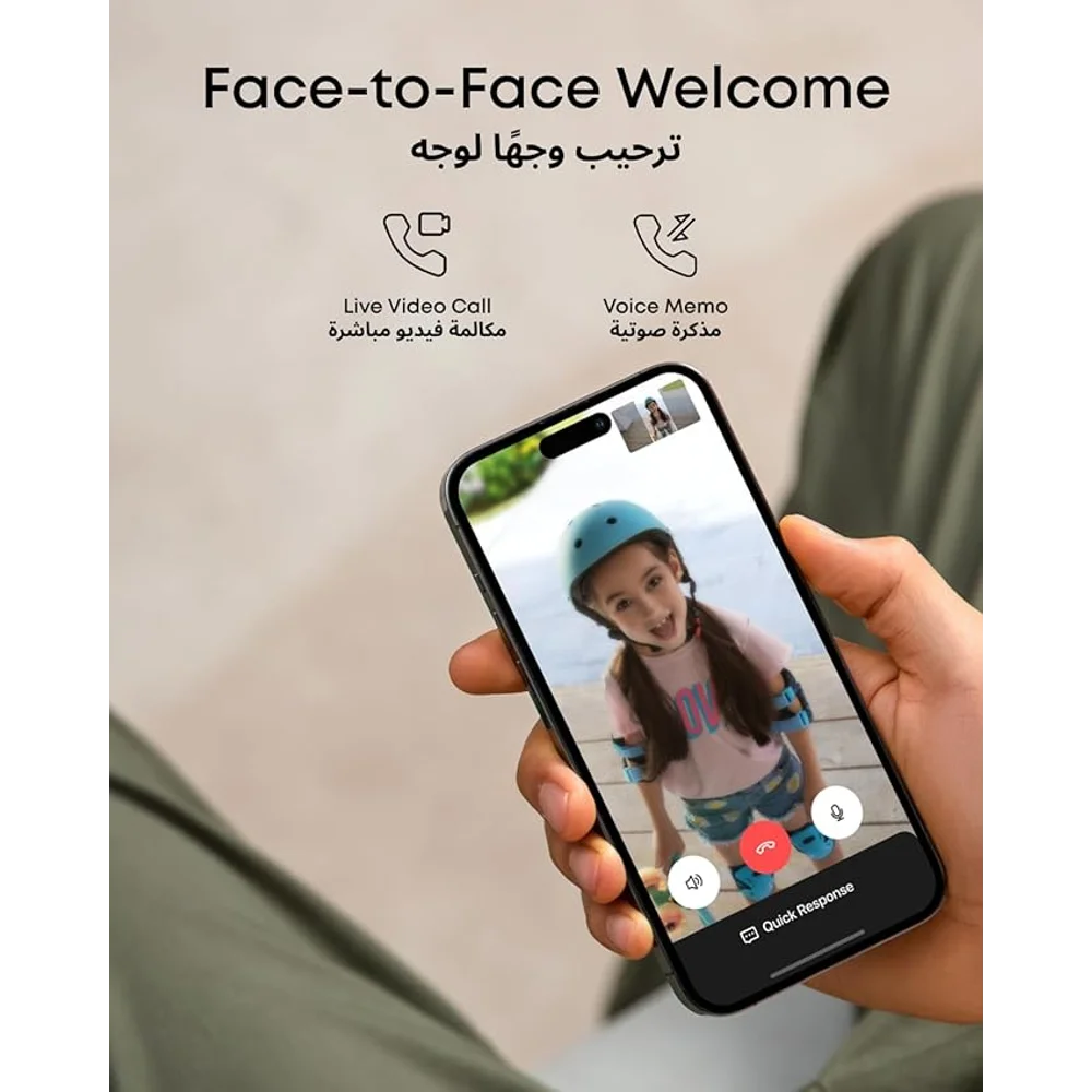 • Live Video Call + Two-Way Audio: Real-time conversation with visitors from anywhere using smartphone; screen deliveries remotely.
