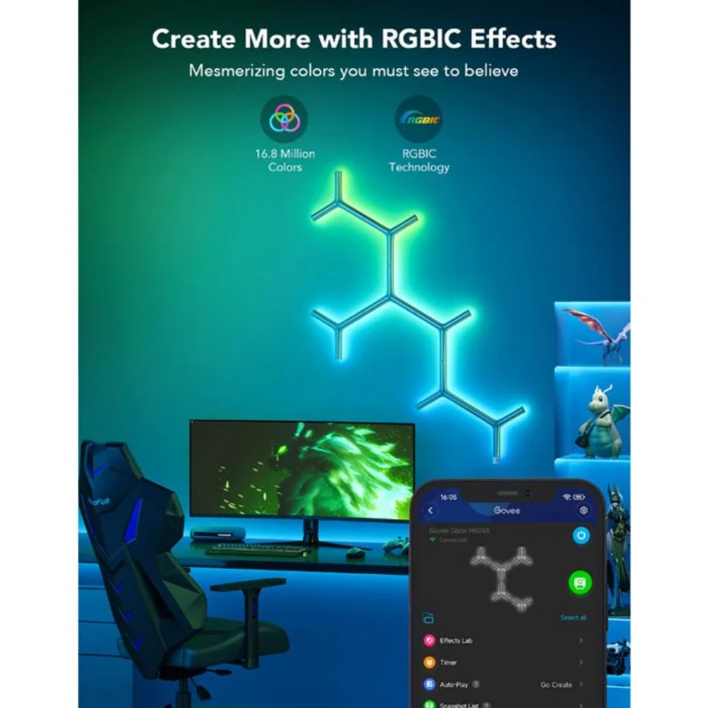 Whether you’re creating an immersive gaming setup, enhancing your streaming backdrop, designing a creative workspace, adding ambiance to your living room, or simply expressing your personal style through dynamic lighting, the Govee Glide RGBIC Y Lights deliver professional-grade smart lighting with consumer-friendly simplicity. Its RGBIC technology (vs. standard RGB) provides multi-color simultaneous display for stunning visual effects, while the modular Y-shaped design offers unlimited creative possibilities—making every moment more vibrant, immersive, and perfectly lit.