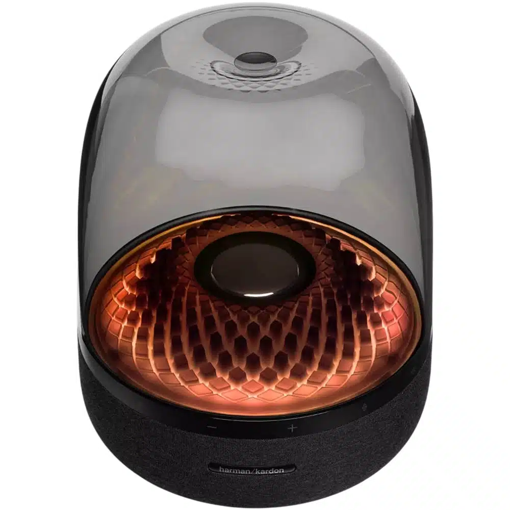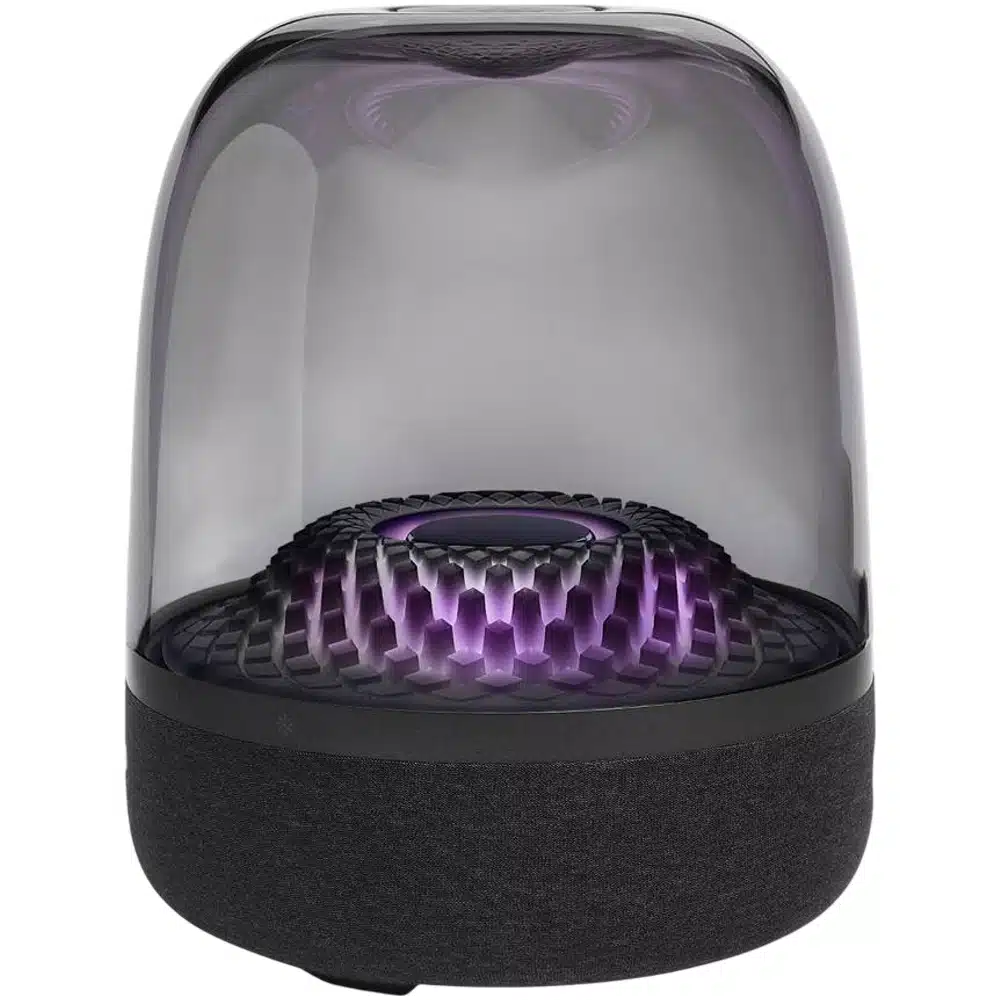 Designed with Harman Kardon’s iconic transparent dome, the Aura Studio 4 brings a unique style element to homes, offices, and studios. Its build quality and materials reflect the brand’s commitment to high-end craftsmanship. The speaker features smooth surfaces, subtle lighting, and a contemporary design that blends seamlessly with virtually any interior environment.