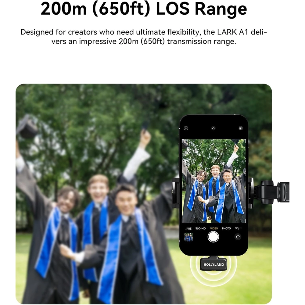 Thanks to Hollyland’s advanced 2.4GHz digital transmission, you get zero-latency and lossless audio at distances of up to 200 meters (656 ft) in open areas. Record freely without worrying about disconnections or interference.
