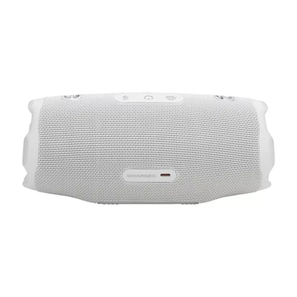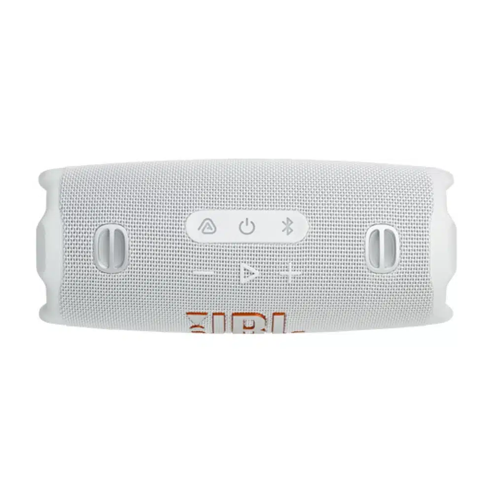 The White JBL Charge 6 is more than a speaker — it’s a style statement. With its premium fabric finish and durable rubber housing, it combines elegance with endurance. Its minimalist design fits any décor or adventure setup while keeping a clean, polished look.