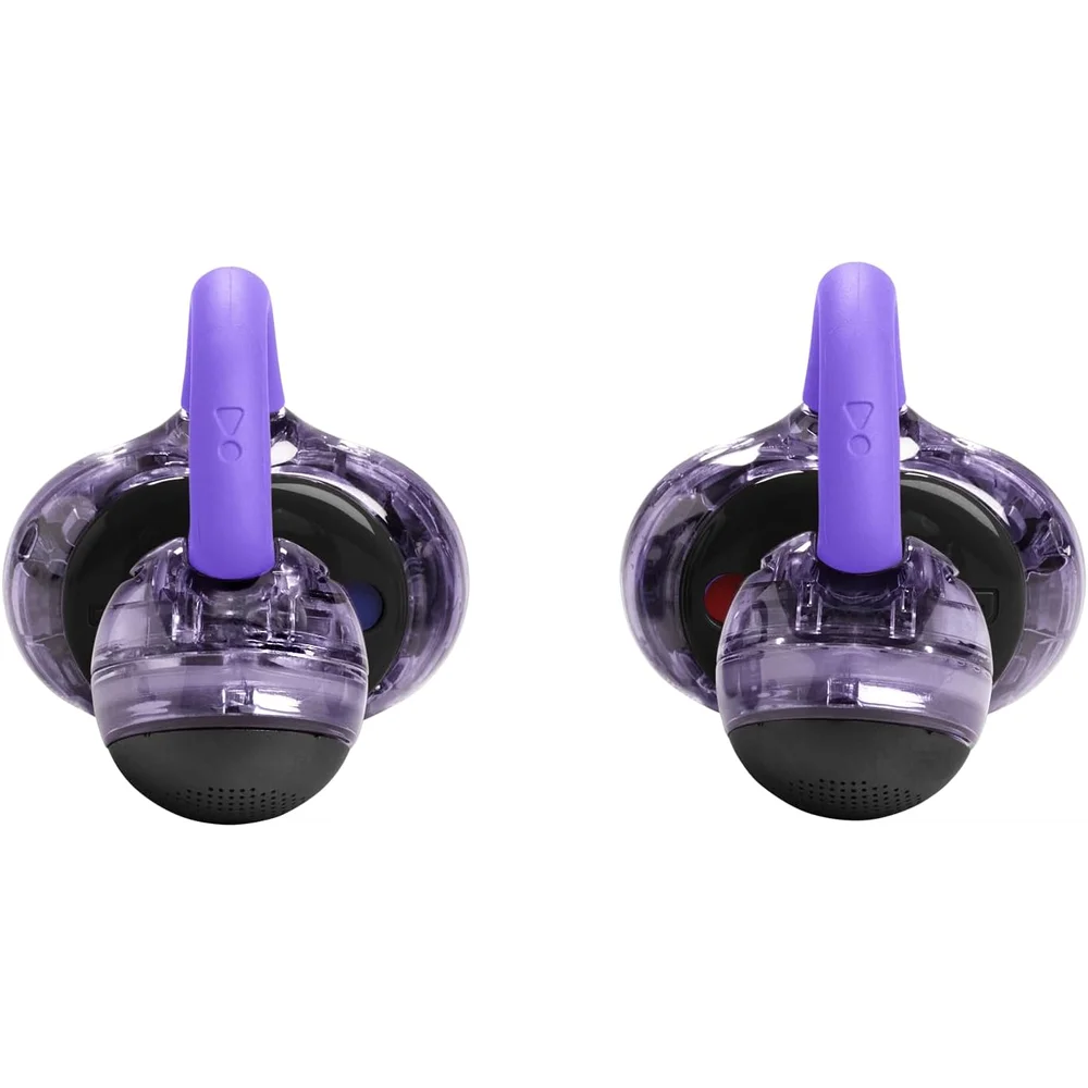 Experience audio freedom with the JBL Soundgear Clips True Wireless Open-Ear Headphones in Ghost Purple, the revolutionary open-ear solution engineered for safety without compromising sound quality. Unlike traditional earbuds, these headphones utilize JBL’s patented SonicArc™ design that wraps around your ears without blocking ear canals—keeping you aware of traffic, conversations, and environmental sounds while delivering immersive audio. The OpenSound Technology employs directional acoustic channels that project sound directly into your ears with 92% less audio leakage than competitors, ensuring privacy during calls and music listening even in crowded spaces.