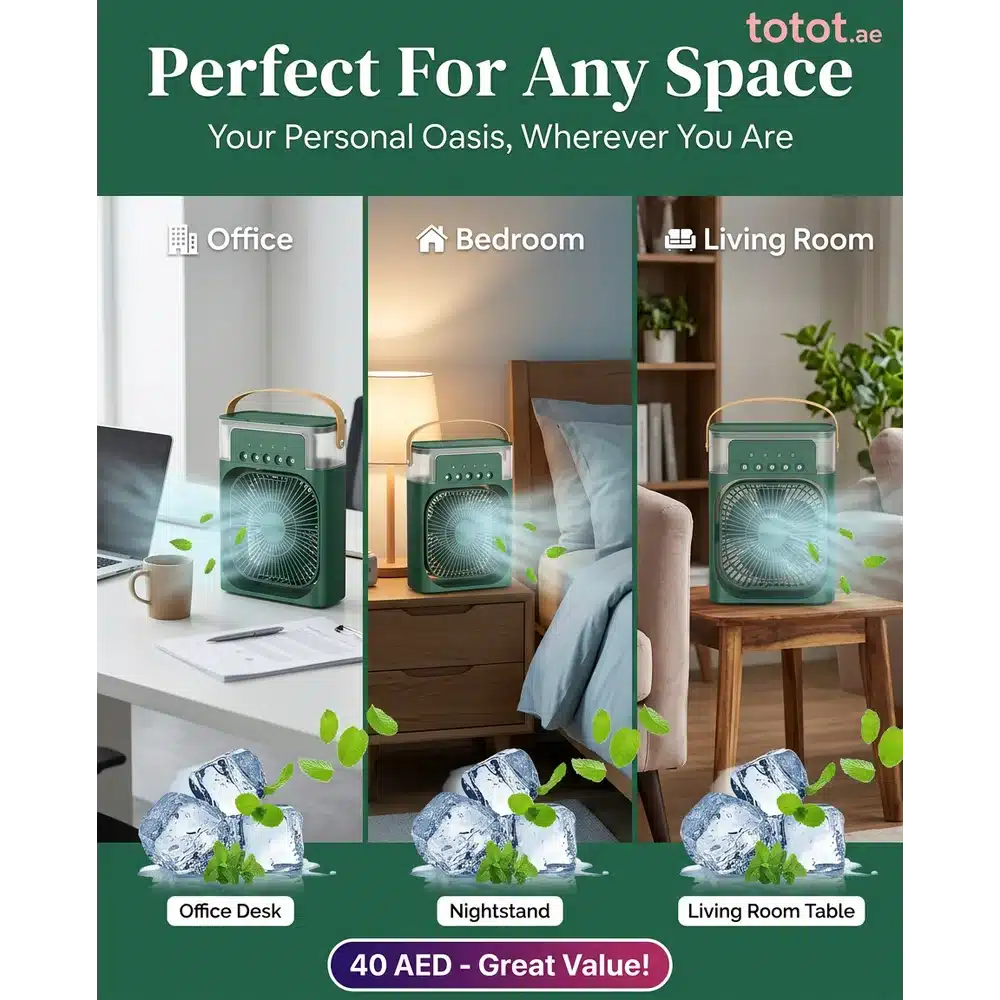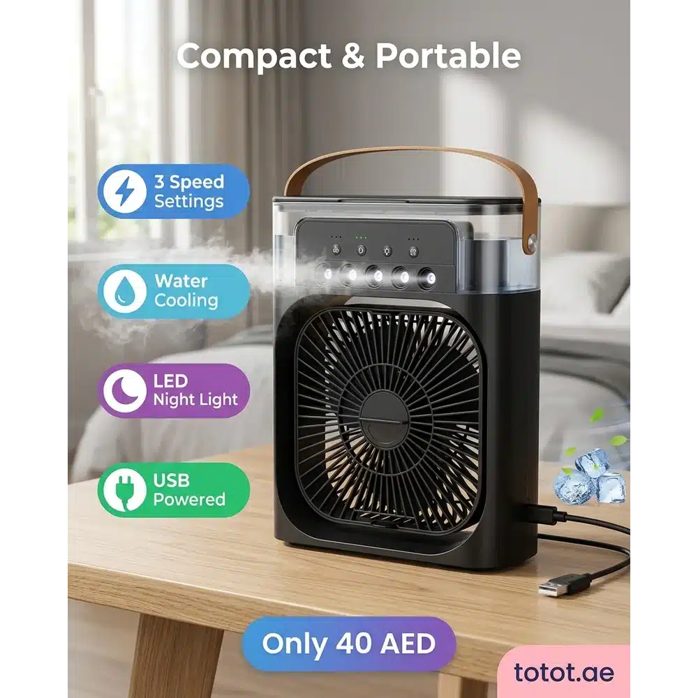 Experience refreshing cooling comfort with the Portable Air Cooler Fan 3-in-1, the versatile mini air conditioner engineered for bedrooms, home offices, and personal spaces who demand efficient cooling, humidification, and ambient lighting without compromise. At its core lies advanced 3-in-1 multifunctional technology, combining powerful air cooling, effective humidification, and soothing LED night light in one compact device—unlike standard fans that only circulate air, this intelligent multi-feature architecture ensures you enjoy cooler temperatures, improved air quality, and customizable ambiance, transforming any small space into a comfortable, refreshing environment whether you’re working, sleeping, or relaxing.