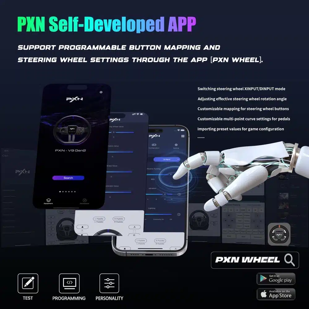 The wheel offers multiple sensitivity levels and custom settings, allowing you to tailor the driving experience to your preferences. Whether you prefer arcade-style responsiveness or realistic simulation handling, the PXN V9 Gen2 adapts to your playstyle.