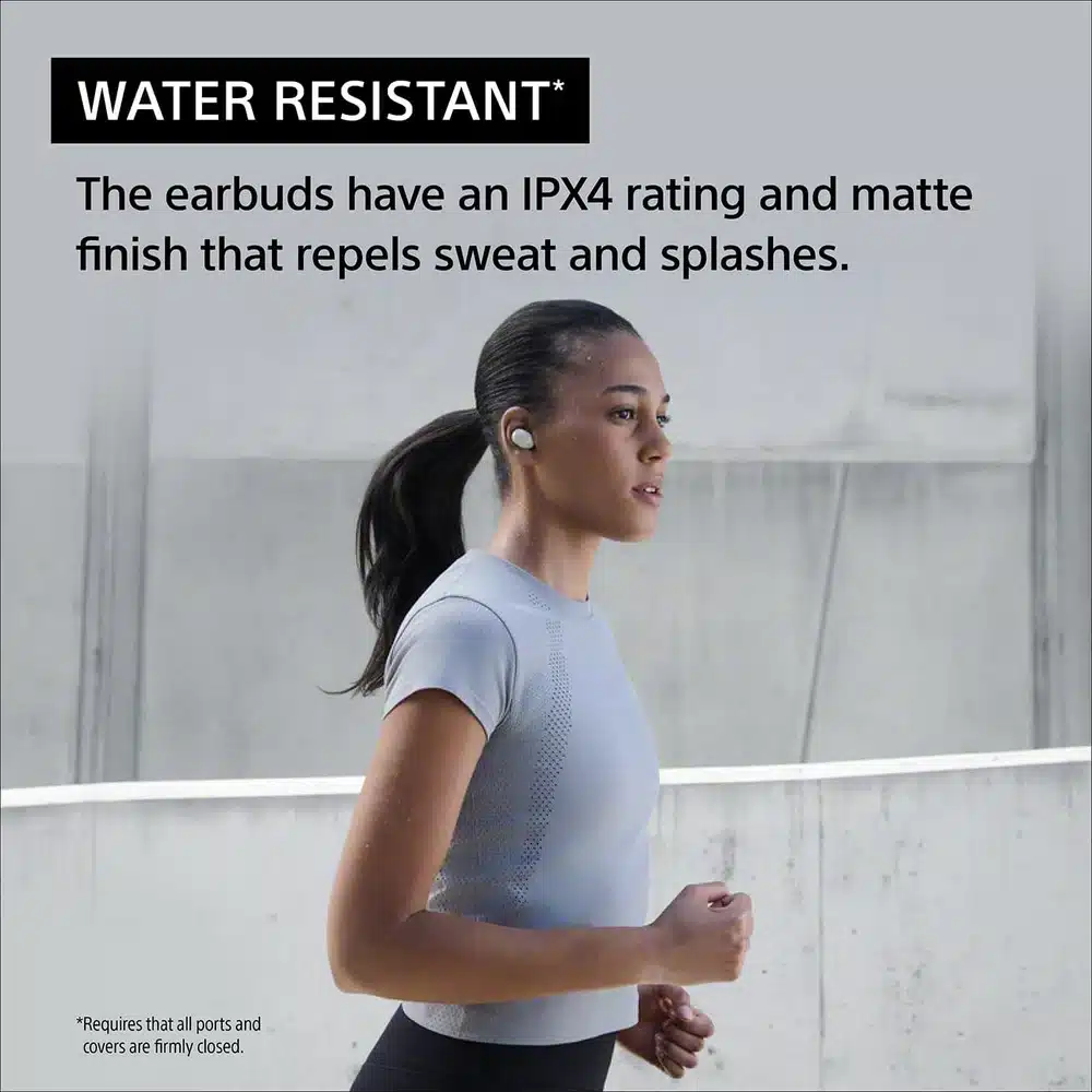 The IPX4 water resistance rating ensures reliable performance against sweat and light splashes