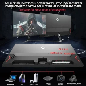 The versatile connectivity with HDMI and DisplayPort inputs ensures compatibility with a wide range of gaming PCs, laptops, consoles, and other devices. Whether you’re connecting your gaming rig, work laptop, or media streaming device, these versatile ports ensure seamless connectivity without adapters or compatibility concerns—providing the flexibility that multi-device users demand.